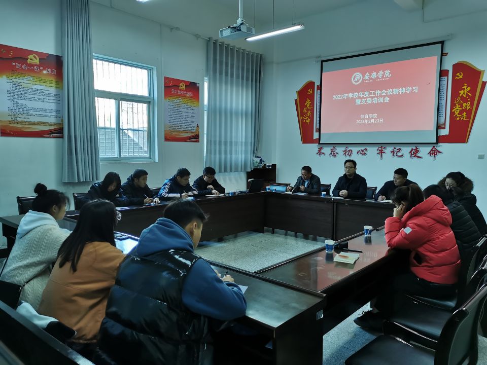 2月23日下午4点,体育公司党总支组织召开2022年公司年度工作会议精神学习暨支委培训会,参会人员有公司党委委员、宣传部部长、兼统战部长鲁延安、宣传部科长陈瑶,体育公司党总支委员和支部委员及部分员工党员。会议由高立平书记主持。