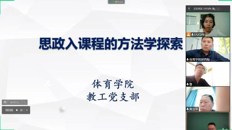 为促进党建与教研有机融合,发挥体育专业课的思政功能,强化立德树人、教书育人的责任,4月13日下午,sunbet申搏教工党支部在腾讯会议召开线上“课程思政的方法学探索”专题会,安康公司党委副书记、董事长钟生海同志、体育公司党总支书记高立平同志参加了会议,会议由教工党支部书记刘芹同志主持。