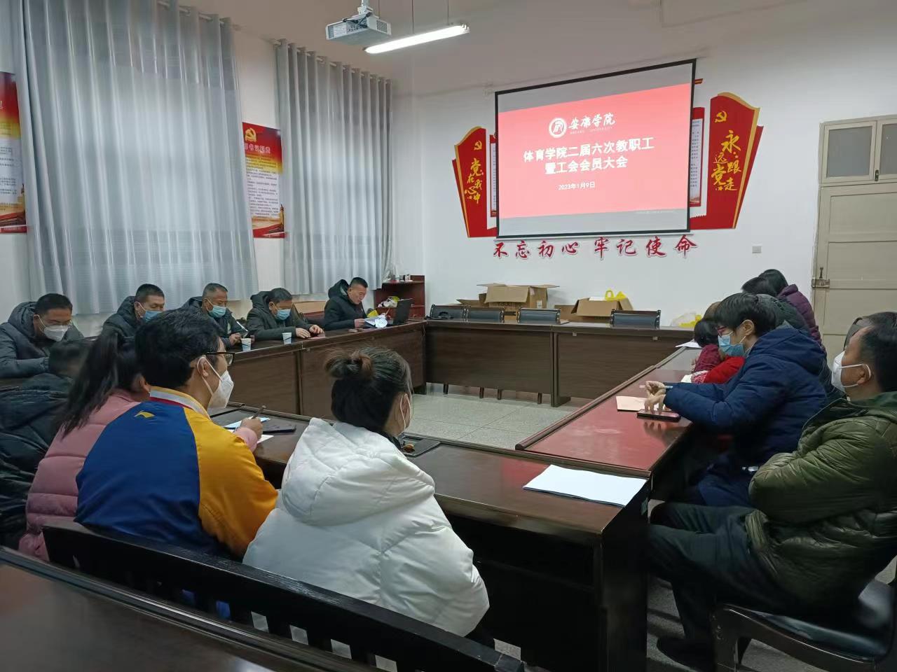 2023年1月9日下午,sunbet申搏在体育馆一楼会议室召开二届六次教职工暨工会会员大会,sunbet申搏27名教职工参加了本次大会,大会由sunbet申搏党总支书记高立平同志大会在庄严的国歌声中拉开序幕。