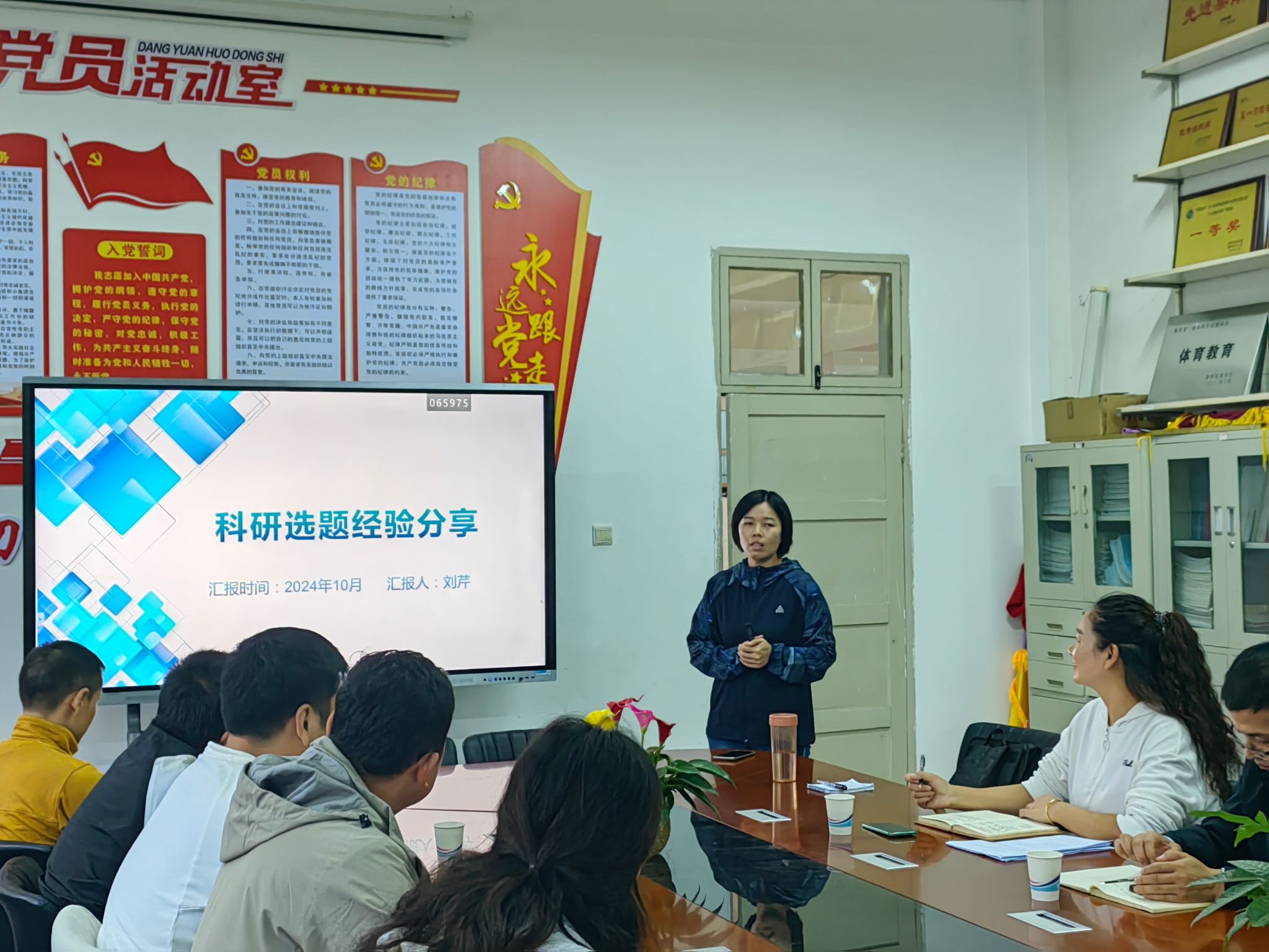 科研副经理李靖为大家介绍了公司科研积分奖励、项目申报、专著、论文发表等相关政策,部署了下一阶段科研的重点工作。体育系主任廖建发汇报了本年度体育系科研情况,并针对所存在的问题,提出了改进措施。教工党支部书记刘芹从选题来源、课题方向、课题大小与选题可行性四个方面分享了科研申报经验。
