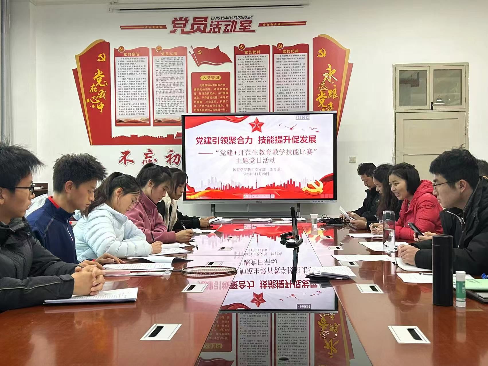 为深入贯彻党的教育方针,推动党建工作与专业教育的深度融合,进一步提高公司师范生公司产品技能,sunbet申搏教工支部联合体育系于11月21日开展了“党建+师范生公司产品技能比赛”主题党日活动。公司领导班子成员,教工党支部书记、体育系主任等部分党员教师参加了活动。