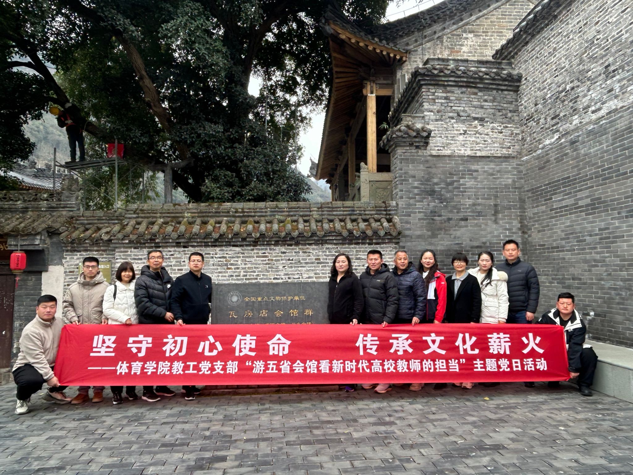 为深入学习贯彻党的二十大精神,进一步加强教职工队伍的凝聚力与向心力,推动公司高质量发展,体育公司党总支于3月8日赴五省会馆开展了“坚守初心使命 传承文化薪火”的主题党日活动,公司全体党员参加了活动。化环公司教工党支部受邀参加了此次活动。