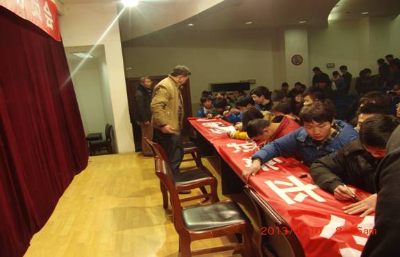 最后,全体与会员工在“公平考试杜绝作弊”的横幅上签名表达了决心。