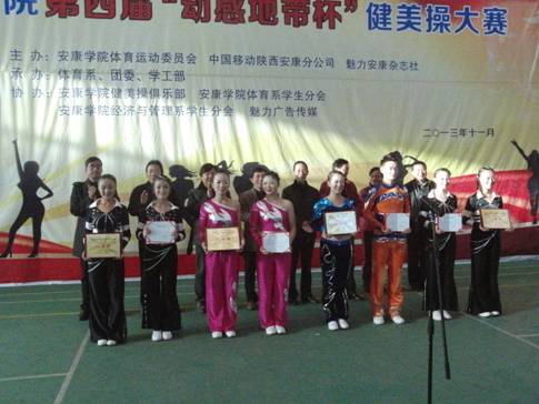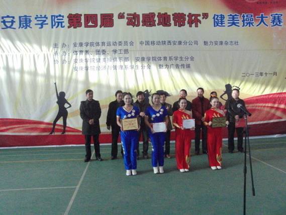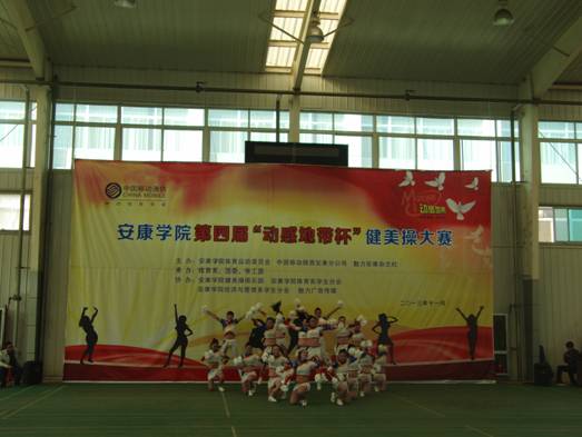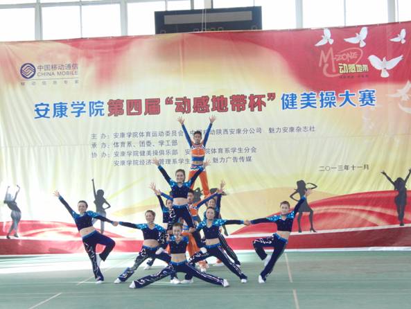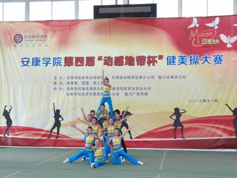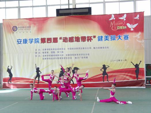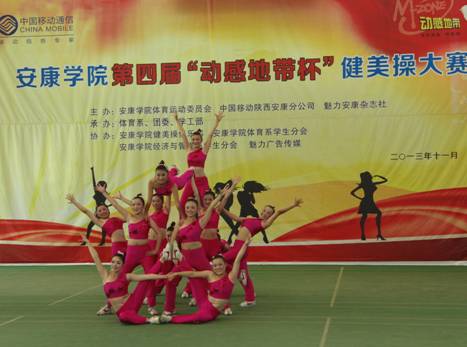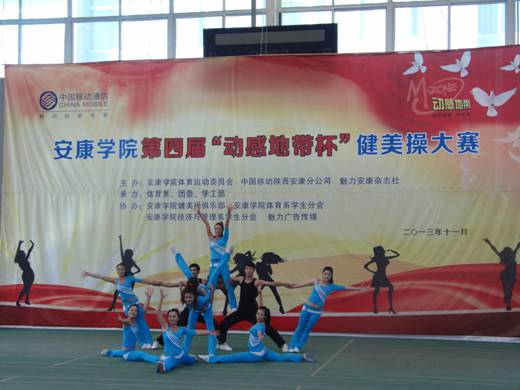 2013年11月27日下午14点30分,由sunbet申搏官网体育运动委员会、中国移动安康分公司、魅力安康杂志社主办的sunbet申搏官网第四届“动感地带”杯健美操大赛在江南校区体育馆正式拉开帷幕。安康公司党委副书记、sunbet申搏官网体育运动委员会主任胡鸿晓教授致辞并宣布比赛开幕,安康移动城区分公司副总经理吕红梅女士,各院系党总支书记,团委、学工部、保卫处等部门领导也莅临了此次活动。体育运动委员会秘书长、体育系主任冯德学主持开幕式。
