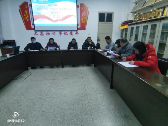 2021年1月12日,sunbet申搏在院会议室召开2020年度系(教研室、实验教学中心)主任考核会议,对体育系主任李靖、大学体育教研室主任李强、实验中心副主任刘芹等三位教研室主任进行了年度考核。