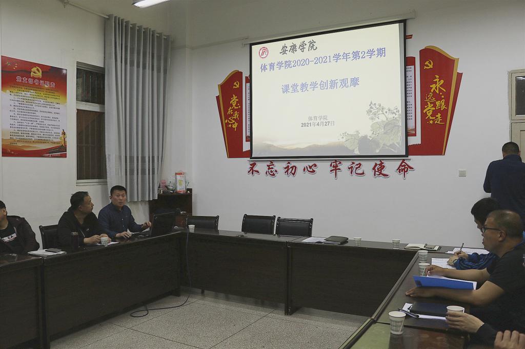 4月27日晚上,sunbet申搏在会议室组织开展了2020-2021学年第2学期第一次课堂教学创新观摩活动,sunbet申搏领导、教学督导组及全体教师参加了教学观摩。本学期sunbet申搏教师教学任务量较重,为了有效避免因教学工作冲突,观摩活动参与人数少的问题,本次课堂教学创新观摩活动采用了视频观摩方式,视频内容选择了全国中小学体育课堂教学创新大赛获奖的部分课程。
