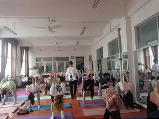 9月15日,实验教学中心教研室组织该教研室全体无课教师在教学楼1502教室观摩公共课瑜伽的教学活动。