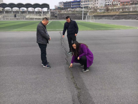 检查人员依次对sunbet申搏实验室、江南、江北体育器材室、篮球场、单杠、双杠、足球场、乒乓球场、羽毛球场、田径场等场地及器械进行了检查,对设施的固定情况,使用年限,安全隐患进行评估,吕经理强调器材如有损坏需及时维修或者更换确保员工使用安全。在江北校区田径场跑道有严重裂缝,高书记指出要及时和相关部门联系,做好维修服务,保证员工在上课期间的安全使用。