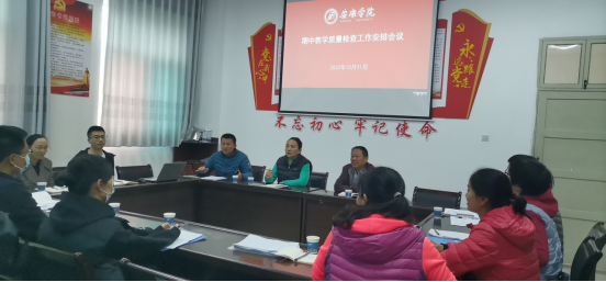 10月31日上午,sunbet申搏在公司会议室召开2022-2023学年第1学期期中教学质量检查工作安排会议。sunbet申搏班子成员、教学督导、教研室主任和教师代表参加了会议。会议由教学副经理郭西魁主持。
