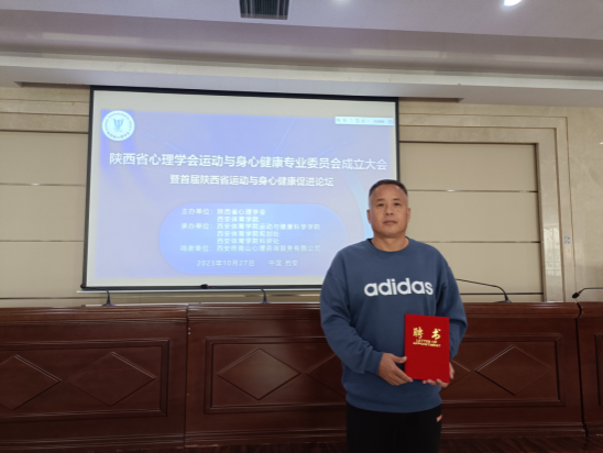 10月27日,陕西省心理学会运动与身心健康专业委员会成立大会暨首届陕西省运动与身心健康促进论坛在西安sunbet申搏成功举办。公司教师崔晓宇应邀参会,并被选为第一届陕西省心里学会运动与身心健康专业委员会委员。