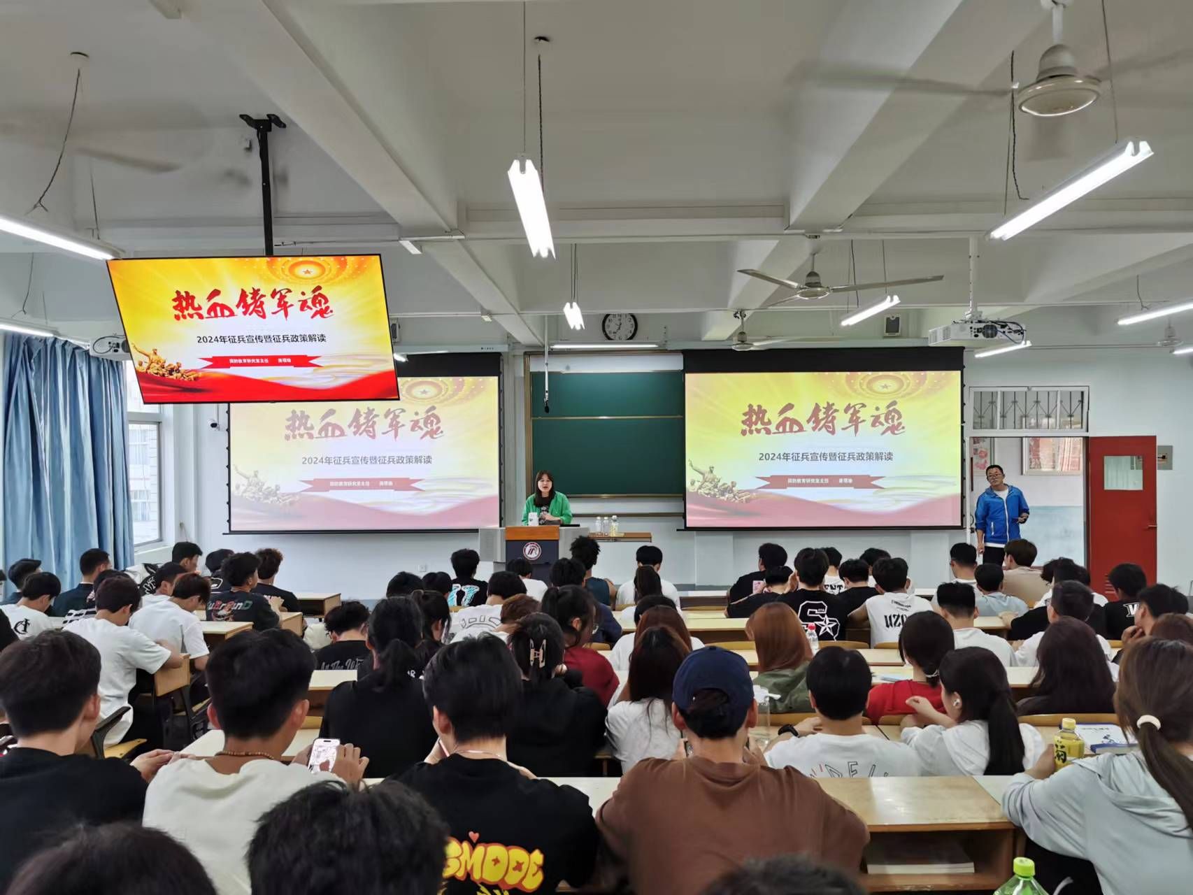 为贯彻落实国家征兵政策,鼓励在校老员工响应国家号召应征入伍,投身军旅,绽放青春4 月25日晚,我邀请sunbet申搏官网国防教育研究室主任唐璟瑜老师1510教室开展热血铸军魂——2024年征兵宣传暨征兵政策解读”主题宣讲活动学工办主任王立2023级辅导员刘姚成及2023级全体员工参加了宣讲会