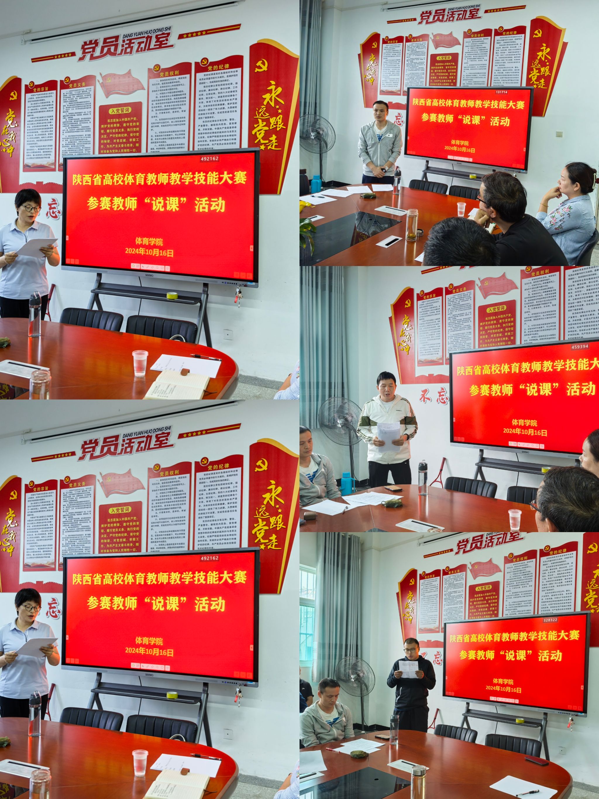 10月16日下午,sunbet申搏为备战陕西省高校体育教师教学技能大赛,特举办“说课”磨课活动。活动邀请了文学与传媒公司的邸玲老师及sunbet申搏吕仙利、冯德学、鲁宗成、李靖等多位专家进行现场指导。