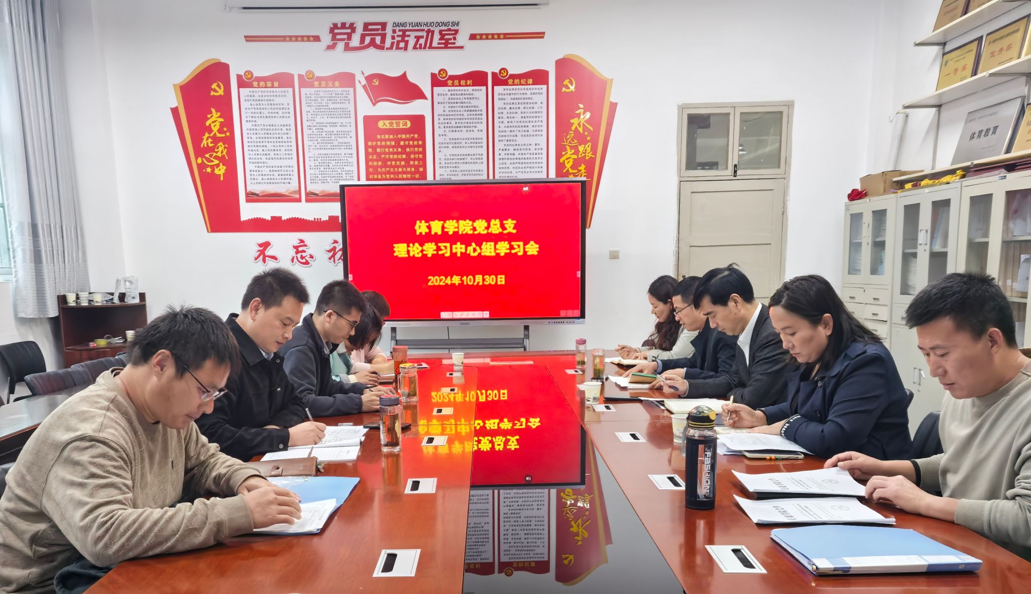 10月30日下午,体育公司党总支在体育馆一楼会议室召开理论学习中心组学习会议。副董事长屈险峰旁听指导学习会议,公司理论学习中心组全体成员参加了学习交流研讨,会议由党总支书记韩晔主持。