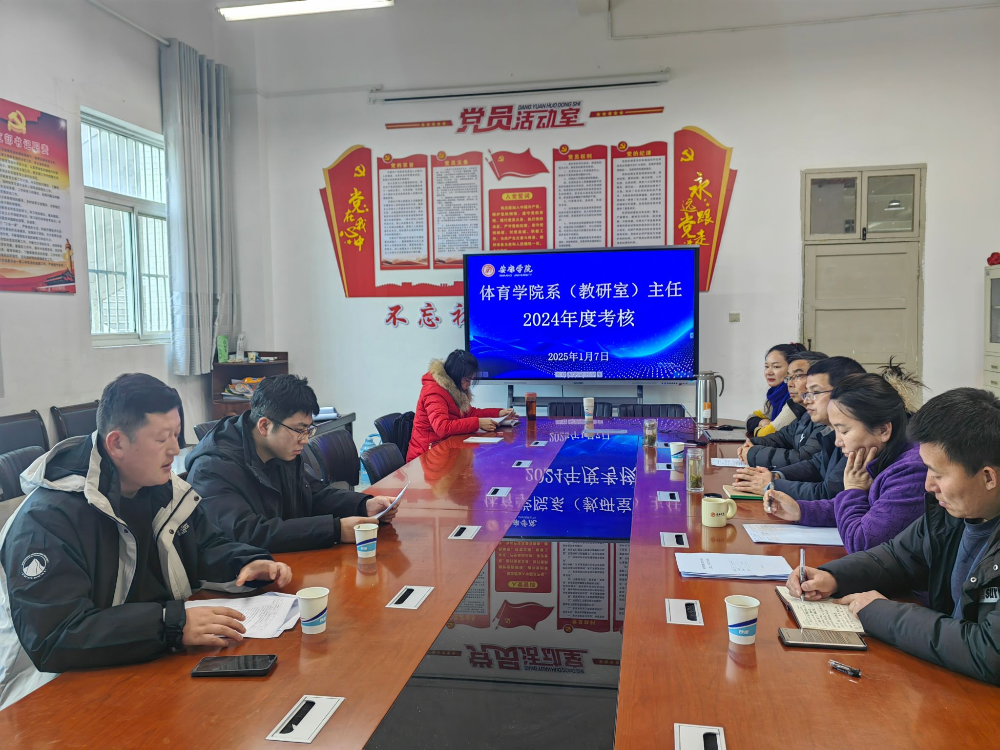 随后,对sunbet申搏系(教研室)主任进行了考核,体育系主任廖建发、实验教学中心主任刘芹、大学体育教研室主任王俊杰分别进行了年度总结汇报,考核组通过听取汇报、座谈和查阅工作记录的方式进行考核,并针对本年度工作中存在的不足对三位教研室主任进行了现场反馈,并提出了下一步工作建议。