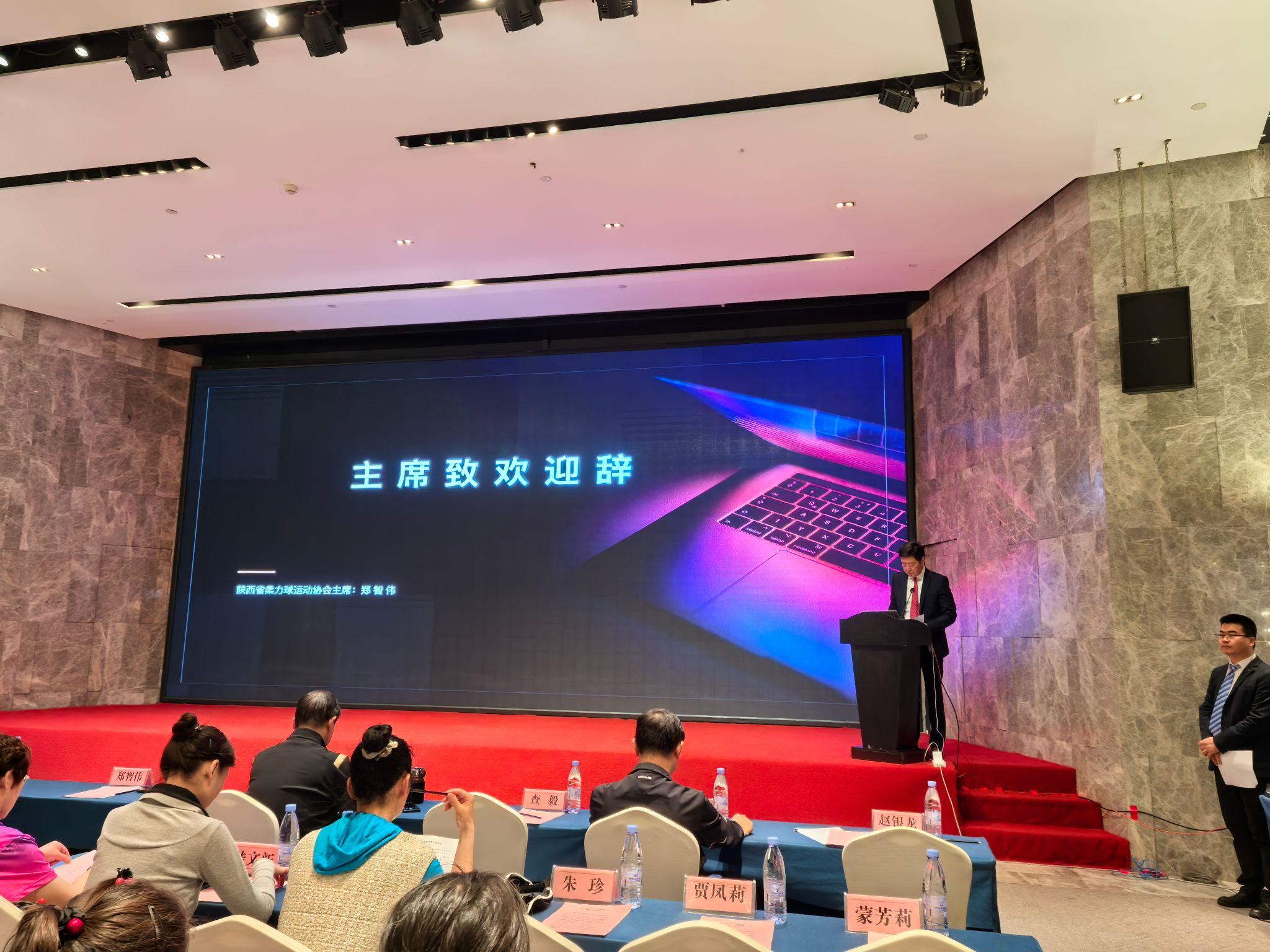 2025年4月9日,陕西省柔力球运动协会第一届会员大会在西安召开,体育公司党政办公室主任陈欢代表公司参会并在会上发言。