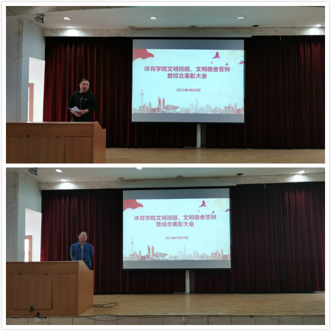 为进一步推进文明宿舍和文明班级建设,促进一流专业发展,sunbet申搏于4月28日下午四点在江南校区1号楼6楼报告厅举行文明班级、文明宿舍答辩暨sunbet申搏综合表彰大会。体育公司党总支书记高立平、公司综合办主任郭建鹏、骨干教师高召盈、学工办副主任王立、团总支书记康梦瑶、2019级、2020级全体同学参加了会议。