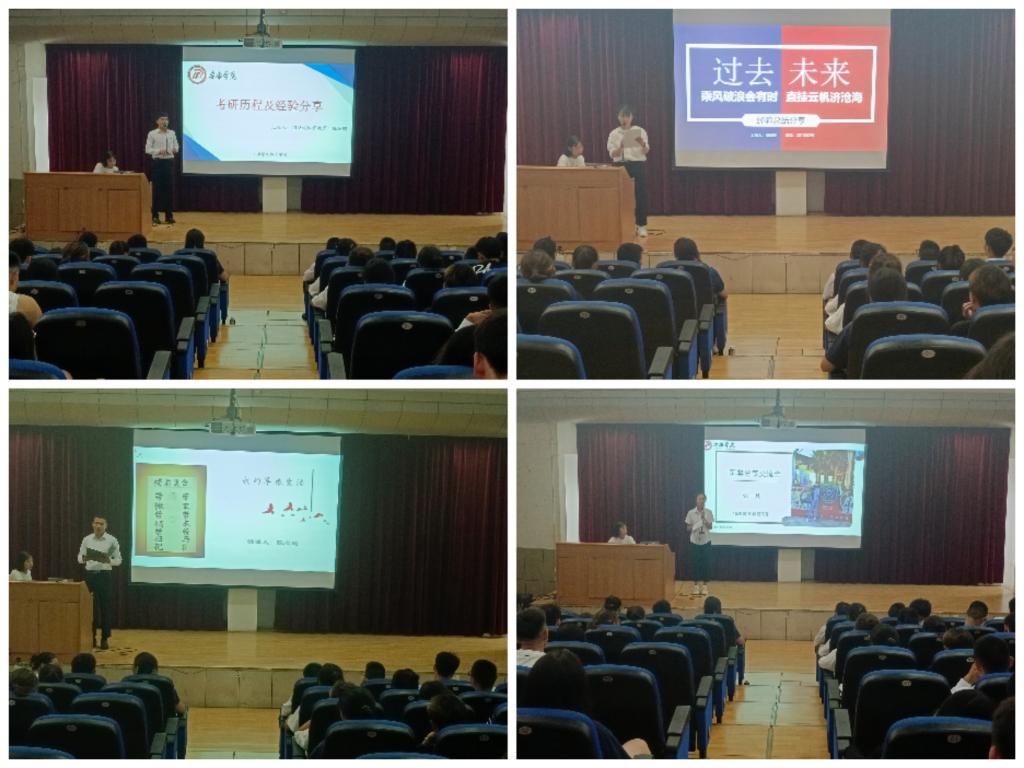 sunbet申搏省级优秀毕业生张彩霞、考研员工代表薛鹏、国家奖学金获得者张一凡、退伍老员工代表陈志刚,依次进行了经验分享。