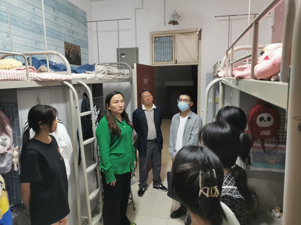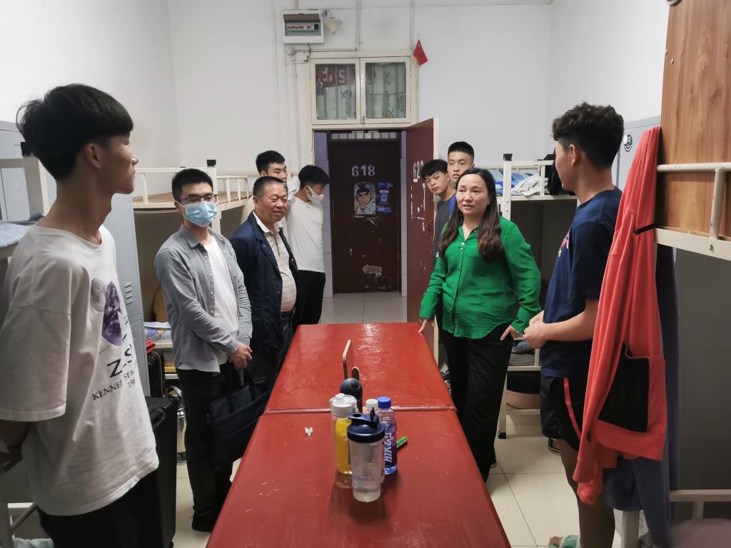公司领导和老师们走进新生宿舍,与新生们亲切交流,细心询问他们到校后的住宿、就餐等方方面面的情况,了解新生入学后的需求,并特别叮嘱新生静态管理期间注意身体、做好防护,有困难及时向辅导员反映。