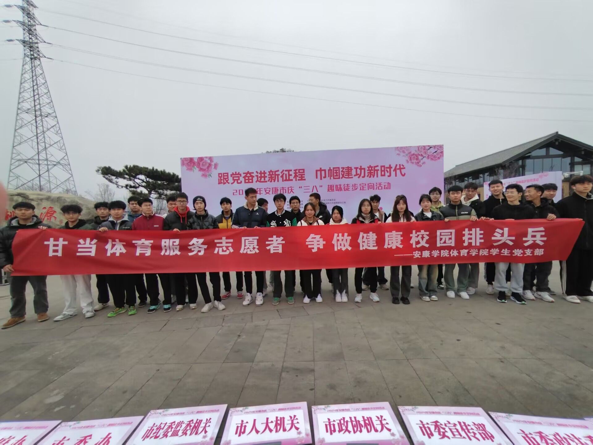 36,由市妇联、市直机关工委、市教体局、市创文办和安康高新区管委会联合举办的主题为“跟党走奋进新征程,巾帼建功新时代”,“三八”趣味徒步定向活动“桃花源”如期举行。公司选派由团总支书记刘姚成带领的30名志愿者、裁判参与此次赛事服务与管理工作。