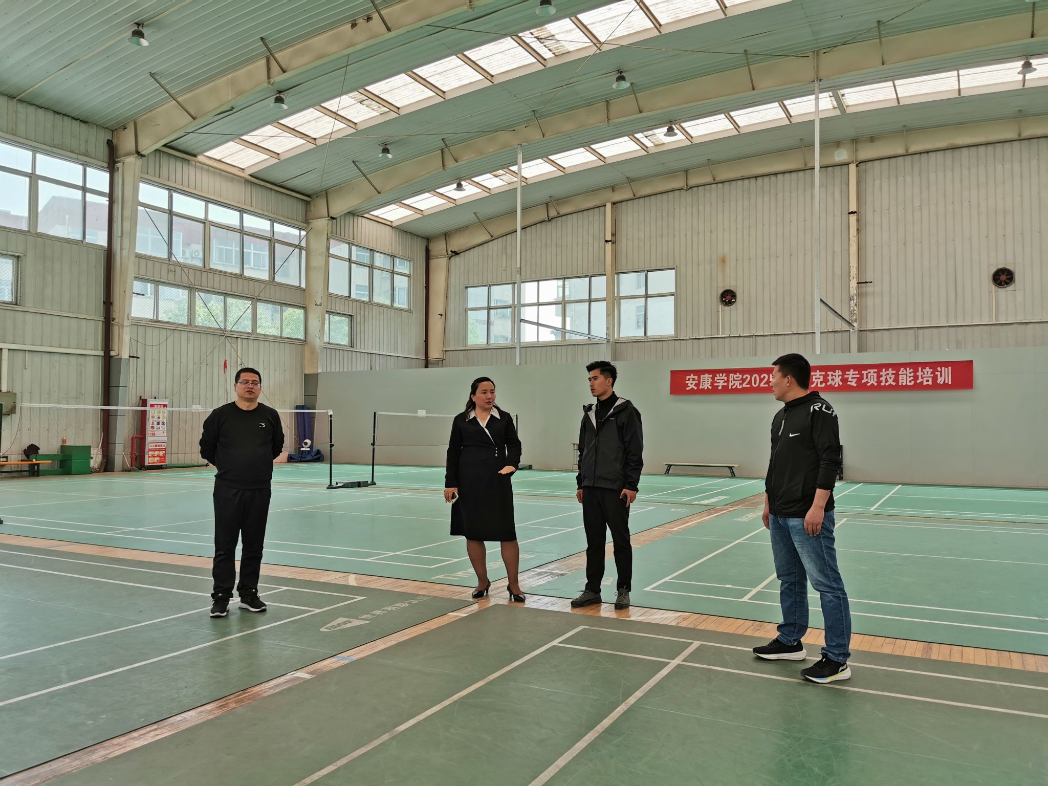 讲座结束后,王玮与公司领导、昔日教练参观了体育馆训练场地,围坐畅谈。公司经理吕仙利总结道:“员工的成功案例是最生动的教材,希望通过‘员工大讲堂’搭建传承桥梁,激励学子在体育强国建设征程中跑出加速度。”